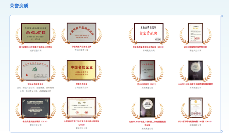 【百利電氣部分榮譽(yù)資質(zhì)】